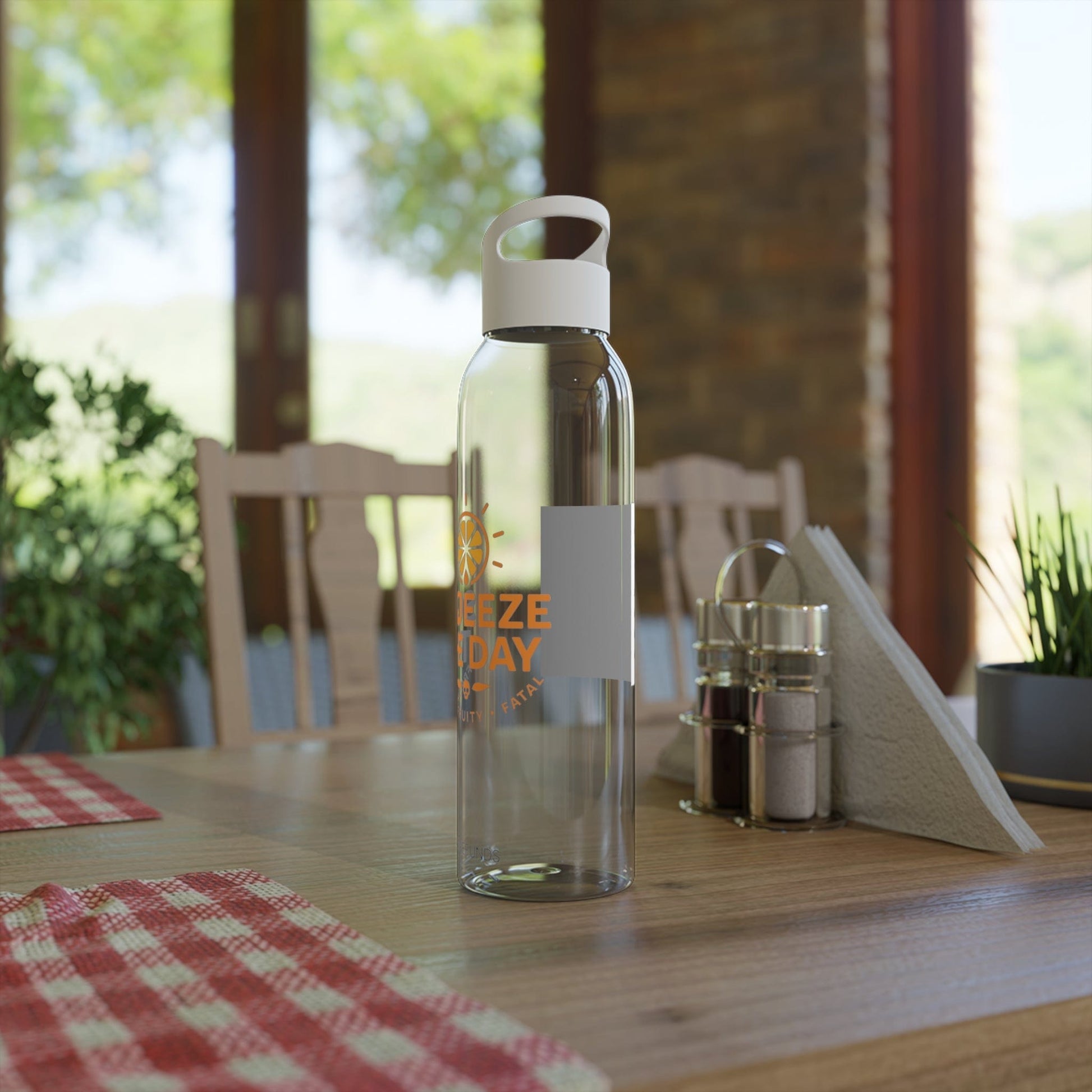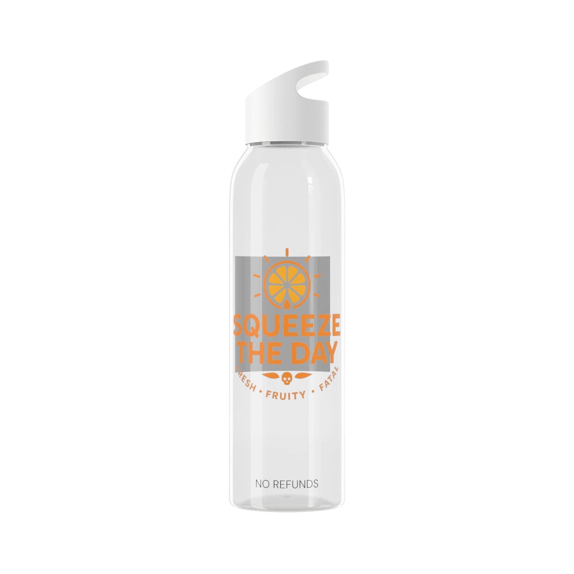 Straight from the pages of Kiss of Death comes the official Squeeze The Day drinks bottle. Featuring the company’s sunny logo, the unforgettable strapline Fresh • Fruity • Fatal, and a handy ingredients list reminding you that “The least of your worries” might just be the allergens. Perfect for water, juice, or whatever questionable concoctions you’re brave enough to sip. Please note: absolutely no refunds.